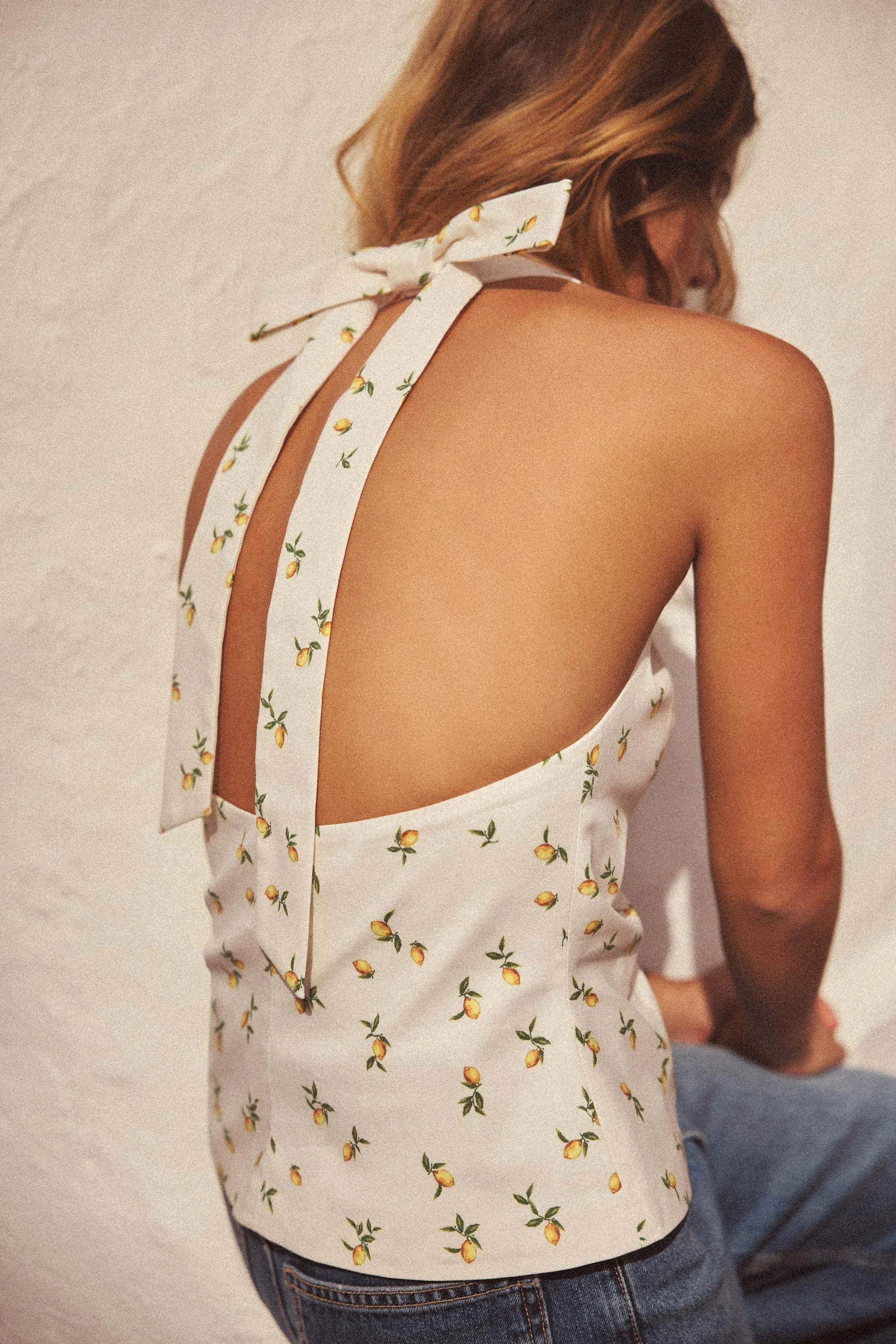 Lemon Print Tie Halter Top - $39.90